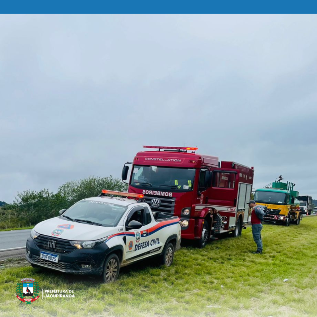 Uma carreta carregada com enxofre tombou em Jacupiranga, o Corpo de Bombeiros e Defesa Civil Municipal estão no local